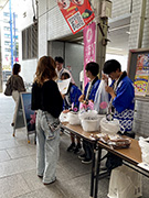 | コロナ禍のため長らく中断していた「八束学園」修学旅行生の大阪「あきんど体験」が5年ぶりに実施され、当会有志が応援に駆けつけました。 「八束学園」は大根島にある松江市立の小中一貫校で、その8年生19名(男子12名・女子7名)と引率教員5名が関西を訪れ、最初の訪問地である天神橋筋商店街で大根島の特産品を販売し「なにわのあきんど」を体験しました。 「天三おかげ館」前と南森町交差点りそな銀行前で、「牡丹苗木の鉢植え」と「はまぼうふうの醤油漬け」を販売しました。 生徒たちは「島根の牡丹はどうですかー」「大根島のお漬物はいかがですかー」などと商店街を歩く人に元気よく声をかけ、商品を販売していきました。なかには「髭ダンの出身地…」や「オモイノタケのふるさと…」などの呼びかけに足を止める若い人もあり、売り上げにつながったも場面もありました。 当会からは、八束町出身の竹谷副会長はじめ松本会長ほか役員・会員有志が、頑張る生徒たちを応援しました。 (写真をクリックすると拡大します) |
